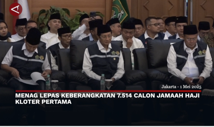 JAKARTA, BERITAPOLITIK.ONLINE — Minister of Religious Affairs Nasaruddin Umar symbolically released the first batch of 7,514 Indonesian pilgrims at the Pondok Gede Hajj Dormitory in East Jakarta on Thursday (1/5). This year, Indonesia dispatched 221 thousand pilgrims following the available quota. However, Indonesia registers more names of prospective pilgrims up to 105 percent of the quota, in anticipation that there are candidates who will not leave. (ANTARA/Suci Nurhaliza/Anggah/Andi Bagasela/Rinto A Navis)